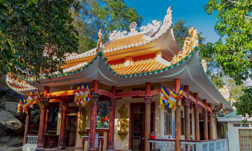 It is favored for its solitude in a corner of Ba Black Mountain, and with an area of only around 200 m2, brings a very ancient and still beauty that adds to the sacredness of this place. The temple’s entryway is constructed in the shape of a wooden bridge.
